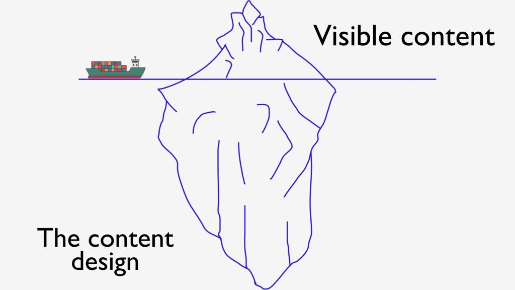 Erin illustrated this by comparing content design to an iceberg: “The micro copy… they’re really that tip of the iceberg that is the visible content. It’s the part that you can see, but the part underneath that other 90% of the iceberg is the content design.” This metaphor highlights the often invisible work that underpins effective UI content, emphasising the necessity of integrating content design into the development process right from the beginning.